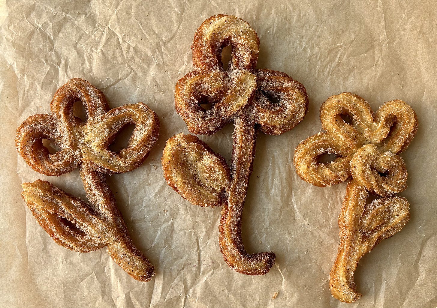 This batch makes about 3-4 large flowers’ which is roughly 8-11 standard sized churros.